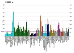 Endothelial cell lines naturally express egfl7, on the contrary to non-endothelial cells.[6][8] In endothelial cells, expression is controlled by the Erg and GATA2 transcription factors and, indirectly by Fli-1.[13] The expression pattern of the egfl7 gene is conserved across species.[7] Egfl7 is expressed in endothelial progenitors and in endothelial cells during embryonic and neonatal development. Expression is down-regulated in adults but is still detectable in blood vessels of lung, heart and kidney.[6][7][8] An up-regulation of egfl7 is observed in endothelial cells during vascular remodelling tissues, such as in reproductive organs during pregnancy, in regenerating endothelium following arterial injury, in atherosclerotic plaques, and in growing tumours.[6][7][14] Expression of egfl7 has also been reported in primordial germ cells and in adult ovaries and testes[15] and in neurons.[16]