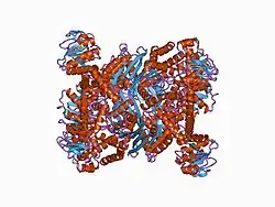 - ↑ Britton KL, Baker PJ, Rice DW, Stillman TJ (November 1992). "Structural relationship between the hexameric and tetrameric family of glutamate dehydrogenases". Eur. J. Biochem. 209 (3): 851–9. doi:10.1111/j.1432-1033.1992.tb17357.x. PMID 1358610.