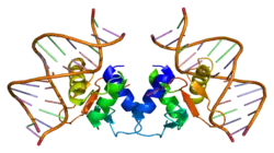 ETS Like-1 protein Elk-1 is a protein that in humans is encoded by the ELK1.[5] Elk-1 functions as a transcription activator. It is classified as a ternary complex factor (TCF), a subclass of the ETS family, which is characterized by a common protein domain that regulates DNA binding to target sequences. Elk1 plays important roles in various contexts, including long-term memory formation, drug addiction, Alzheimer's disease, Down syndrome, breast cancer, and depression.