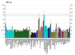 - ↑ Mootha VK, Handschin C, Arlow D, Xie X, St Pierre J, Sihag S, et al. (April 2004). "Erralpha and Gabpa/b specify PGC-1alpha-dependent oxidative phosphorylation gene expression that is altered in diabetic muscle". Proceedings of the National Academy of Sciences of the United States of America. 101 (17): 6570–5. Bibcode:2004PNAS..101.6570M. doi:10.1073/pnas.0401401101. PMC 404086. PMID 15100410.