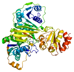 - ↑ Toogood HS, van Thiel A, Basran J, Sutcliffe MJ, Scrutton NS, Leys D (July 2004). "Extensive domain motion and electron transfer in the human electron transferring flavoprotein.medium chain Acyl-CoA dehydrogenase complex". The Journal of Biological Chemistry. 279 (31): 32904–12. doi:10.1074/jbc.M404884200. PMID 15159392. S2CID 6901700.