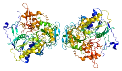 Electron transfer flavoprotein-ubiquinone oxidoreductase, mitochondrial is an enzyme that in humans is encoded by the ETFDH gene. This gene encodes a component of the electron-transfer system in mitochondria and is essential for electron transfer from a number of mitochondrial flavin-containing dehydrogenases to the main respiratory chain.[5]