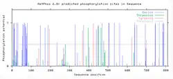 - ↑ NetPhos: Produces neural network predictions for serine, threonine and tyrosine phosphorylation sites in eukaryotic proteins. Phosphorylation sites in EVI5L
