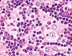 Emperipolesis is the presence of an intact cell within the cytoplasm of another cell.[1] It is derived from Greek (en is inside, peripoleomai is go round).[2] Emperipolesis is an uncommon biological process, and can be physiological or pathological.[3]
