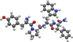 Endomorphin-1 (EM-1) (amino acid sequence Tyr-Pro-Trp-Phe-NH2) is an endogenous opioid peptide and one of the two endomorphins.[1] It is a high affinity, highly selective agonist of the μ-opioid receptor, and along with endomorphin-2 (EM-2), has been proposed to be the actual endogenous ligand of the μ-receptor.[1][2][3][4] EM-1 produces analgesia in animals and is equipotent with morphine in this regard.[3] The gene encoding for EM-1 has not yet been identified,[4] and it has been suggested that endomorphins could be synthesized by an enzymatic, non-ribosomal mechanism.[5]