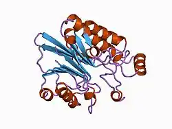 - ↑ Dlaki M (2000). "Functionally unrelated signalling proteins contain a fold similar to Mg2+-dependent endonucleases". Trends Biochem. Sci. 25 (6): 272–273. doi:10.1016/S0968-0004(00)01582-6. PMID 10838565.