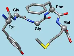 ![]() Met-enkephalin 3D structure, alpha-carbons shown as balls and labeled by residue.[1] | |||||||