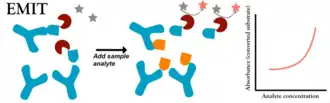 Enzyme multiplied immunoassay technique (EMIT) is a common method for qualitative and quantitative determination of therapeutic and recreational drugs and certain proteins in serum and urine.[1]
