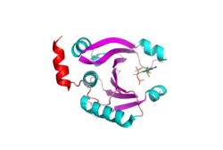 - ↑ Volpon L, Osborne MJ, Zahreddine H, Romeo AA, Borden KL (May 2013). "Conformational changes induced in the eukaryotic translation initiation factor eIF4E by a clinically relevant inhibitor, ribavirin triphosphate". Biochemical and Biophysical Research Communications. 434 (3): 614–619. doi:10.1016/j.bbrc.2013.03.125. PMC 3659399. PMID 23583375.