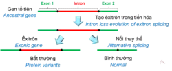 Exitrons are a result of alternative splicing (AS), in which introns are typically cut out of a pre mRNA sequence, while exons remain in the sequence and are translated into proteins. The same sequence within a pre mRNA strand can be considered an intron or exon depending on the desired protein to be produced. As a result, different final mRNA sequences are generated and a large variety of proteins can be made from one single gene.[1] Mutations that exist in these sequences can also alter the way in which a sequence is spliced and as a result, change the protein produced.[2] Splicing mutations of a mRNA sequence has been found to account for 15-60% of human genetic diseases, which suggests there may be a crucial role of exitrons in organ homeostasis.[3][4]