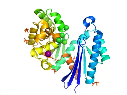 - ↑ Kristensen, Ole; Laurberg, Martin; Liljas, Anders; Kastrup, Jette S.; Gajhede, Michael (2004). "Structural Characterization of the Stringent Response Related Exopolyphosphate/Guanosine Pentaphosphate Phosphohydrolase Protein Family". Biochemistry. 43 (28): 8894–8900. doi:10.1021/bi049083c. PMID 15248747.