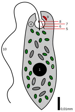 - 1 2 Wolken J (1977). "Euglena: the photoreceptor system for phototaxis". J Protozool. 24 (4): 518–22. doi:10.1111/j.1550-7408.1977.tb01004.x. PMID 413913.