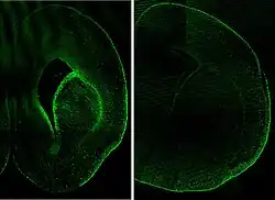 - ↑ Keilani S, Sugaya K (July 2008). "Reelin induces a radial glial phenotype in human neural progenitor cells by activation of Notch-1". BMC Developmental Biology. 8 (1): 69. doi:10.1186/1471-213X-8-69. PMC 2447831. PMID 18593473.