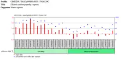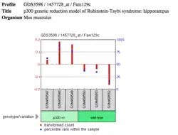 In the human GEO profile, FAM129C appears to be expressed at lower levels in tissues with dilated cardiomyopathy by almost 50% when compared to non-failing septum tissue.[10] This may mean that FAM129C plays a role in non-failing heart tissue. Another condition in which FAM129C is significantly down-regulated is with the wild-type genotype hippocampal tissue of Rubinstein-Taybi compared with the p300 +/- genotype.[11] People with this condition have an increased risk of developing noncancerous and cancerous tumors such as leukemia and lymphoma
