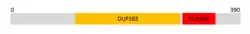 Every ortholog and homolog of FAM203B has a DUF383 domain and a DUF384 domain (except Anolis carolinensis, which is missing DUF384 due to a large 3' truncation[23][27]). There is significant variation among mammals, marsupials, and monotremes as to where the DUF383 domain begins, whereas this variation is smaller in reptiles, amphibians, fish, invertebrates, plants, and fungi. Additionally, the DUF383 domain ends at the same location for all homologs, while the DUF384 domain starts and ends at roughly the same location in all homologs. There is high homology in the DUF384 domain (292..349) and in the DUF383 domain (154..288), and several amino acids are completely conserved in vertebrates, invertebrates, plants, and fungi, which include Arg190, Gly219, Asn226, Lys273, and Lys338. Other highly conserved amino acids include Asn87, Lys88, Arg216, and Phe229.[4][22]