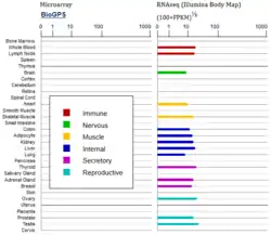 Expression Profile: mRNA expression has been localized in many tissue types (immune, nervous, muscle, internal, secretory, and reproductive) in similar quantities and may therefore be ubiquitous.[12]