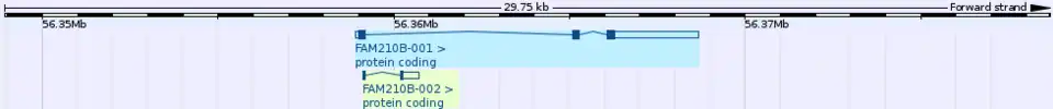- 1 2 "Gene: FAM210B (OTTHUMG00000032793) - Summary - Homo sapiens - Vega Genome Browser 64". vega.sanger.ac.uk. Retrieved 2016-05-09.