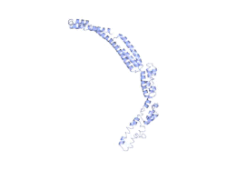 The MSA, shown below and generated with Biology Workbench CLUSTALW, arranges orthologs by the first letter of genus and then the first two letters of species.[13] There are 3 domains that are highly conserved across orthologs. Two of these domains have an unknown function, while the third domain is a coiled-coil domain. Conservation of these regions was traced back to Cryptosporidium parvum Iowa II, which diverged from Homo sapiens 1724.7 MYA. Conserved region 1 contains mostly polar amino acids; conserved region 2 contains both polar and non-polar amino acids; and the coiled-coil domain contains mostly polar amino acids.