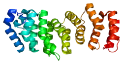 It consists of 13 α-helices, 1 310-helix and no β-strand. Long shaped, non-globular shape and 70 Å n size. Width of 30 Å and thickness 20 Å. The protein folds continuously in right-handed manner from N- to C- terminal. Identifying it is easy because of its helices at the end of C-end.[14]