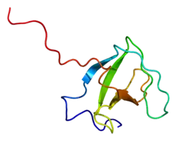 - ↑ Nagase T, Ishikawa K, Suyama M, Kikuno R, Miyajima N, Tanaka A, Kotani H, Nomura N, Ohara O (October 1998). "Prediction of the coding sequences of unidentified human genes. XI. The complete sequences of 100 new cDNA clones from brain which code for large proteins in vitro". DNA Research. 5 (5): 277–86. doi:10.1093/dnares/5.5.277. PMID 9872452.