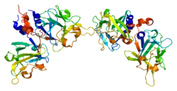 - ↑ Chellaiah A, Yuan W, Chellaiah M, Ornitz DM (December 1999). "Mapping ligand binding domains in chimeric fibroblast growth factor receptor molecules. Multiple regions determine ligand binding specificity". The Journal of Biological Chemistry. 274 (49): 34785–94. doi:10.1074/jbc.274.49.34785. PMID 10574949.