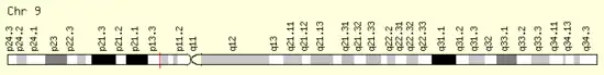 FAM221B can be found around the end of the short arm of human chromosome 9.