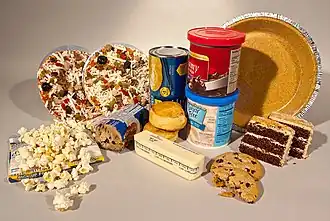 - ↑ the American Heart Association,Sacks FM, Lichtenstein AH, Wu JH, Appel LJ, Creager MA, Kris-Etherton PM, Miller M, Rimm EB, Rudel LL, Robinson JG, Stone NJ, Van Horn LV (July 2017). "Dietary Fats and Cardiovascular Disease: A Presidential Advisory From the American Heart Association". Circulation. 136 (3): e1 – e23. doi:10.1161/CIR.0000000000000510. PMID 28620111. S2CID 367602.the World Health Organization, Health Canada,"Choosing foods with healthy fats". Health Canada. 2018-10-10. Retrieved 2019-09-24., the US Department of Health and Human Services,"Cut Down on Saturated Fats" (PDF). United States Department of Health and Human Services. Retrieved 2019-09-24. the UK National Health Service,"Fat: the facts". United Kingdom's National Health Service. 2018-04-27. Retrieved 2019-09-24. the UK Scientific Advisory Committee on Nutrition "Saturated Fats and Health". Scientific Advisory Committee on Nutrition (SACN). Retrieved 26 July 2021], the Australian Department of Health and Aging,"Fat". Australia's National Health and Medical Research Council and Department of Health and Ageing. 2012-09-24. Retrieved 2019-09-24. the Singapore Ministry of Health,"Getting the Fats Right!". Singapore's Ministry of Health. Retrieved 2019-09-24. the Indian Ministry of Health and Family Welfare,"Health Diet". India's Ministry of Health and Family Welfare. Retrieved 2019-09-24. the New Zealand Ministry of Health,"Making healthier food choices". New Zealand's Ministry of Health. Retrieved 2021-06-03. and Hong Kong's Department of Health."Know More about Fat". Hong Kong's Department of Health. Retrieved 2019-09-24.