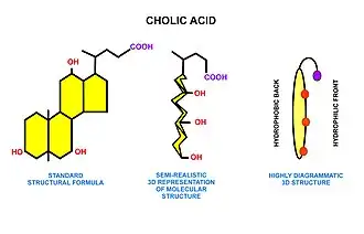 - ↑ Hofmann AF (1963). "The function of bile salts in fat absorption. The solvent properties of dilute micellar solutions of conjugated bile salts". Biochem. J. 89 (1): 57–68. doi:10.1042/bj0890057. PMC 1202272. PMID 14097367.