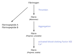 - ↑ Mosesson, M. W. (August 2005). "Fibrinogen and fibrin structure and functions". Journal of Thrombosis and Haemostasis. 3 (8): 1894–1904. doi:10.1111/j.1538-7836.2005.01365.x. ISSN 1538-7933. PMID 16102057. S2CID 22077267.