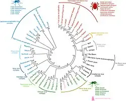 Evolutionary relationships between endogenised viral elements of Flaviviruses and contemporary flaviviruses using maximum likelihood approaches have identified that arthropod-vectored flaviviruses likely emerged from an arachnid source.[33] This contradicts earlier work with a smaller number of extant viruses showing that the tick-borne viruses emerged from a mosquito-borne group.[34]