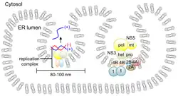 - ↑ Yu L, Nomaguchi M, Padmanabhan R, Markoff L (2008). "Specific requirements for elements of the 5' and 3' terminal regions in flavivirus RNA synthesis and viral replication". Virology. 374 (1): 170–85. doi:10.1016/j.virol.2007.12.035. PMC 3368002. PMID 18234265.