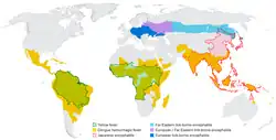 - ↑ Gaunt MW, Sall AA, de Lamballerie X, Falconar AK, Dzhivanian TI, Gould EA (2001). "Phylogenetic relationships of flaviviruses correlate with their epidemiology, disease association and biogeography". J Gen Virol. 82 (8): 1867–1876. doi:10.1099/0022-1317-82-8-1867. PMID 11457992.