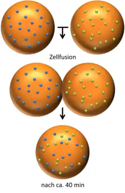 - ↑ Frye LD, Edidin M (September 1970). "The rapid intermixing of cell surface antigens after formation of mouse-human heterokaryons". Journal of Cell Science. 7 (2): 319–335. doi:10.1242/jcs.7.2.319. PMID 4098863.