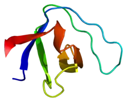 - ↑ Ziemnicka-Kotula D, Xu J, Gu H, Potempska A, Kim KS, Jenkins EC, Trenkner E, Kotula L (May 1998). "Identification of a candidate human spectrin Src homology 3 domain-binding protein suggests a general mechanism of association of tyrosine kinases with the spectrin-based membrane skeleton". J. Biol. Chem. 273 (22): 13681–92. doi:10.1074/jbc.273.22.13681. PMID 9593709.
