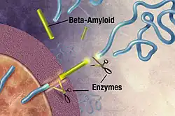 In December 2008, Folding@home found several small drug candidates which appear to inhibit the toxicity of Aβ aggregates.[56] In 2010, in close cooperation with the Center for Protein Folding Machinery, these drug leads began to be tested on biological tissue.[35] In 2011, Folding@home completed simulations of several mutations of Aβ that appear to stabilize the aggregate formation, which could aid in the development of therapeutic drug therapies for the disease and greatly assist with experimental nuclear magnetic resonance spectroscopy studies of Aβ oligomers.[53][57] Later that year, Folding@home began simulations of various Aβ fragments to determine how various natural enzymes affect the structure and folding of Aβ.[58][59]