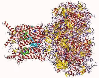 NAD-dependent formate dehydrogenases are important in methylotrophic yeast and bacteria, being vital in the catabolism of C1 compounds such as methanol.[3] The cytochrome-dependent enzymes are more important in anaerobic metabolism in prokaryotes.[4] For example, in E. coli, the formate:ferricytochrome-b1 oxidoreductase is an intrinsic membrane protein with two subunits and is involved in anaerobic nitrate respiration.[5][6]