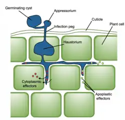 - ↑ Pradhan, Amrita; Ghosh, Srayan; Sahoo, Debashis; Jha, Gopaljee (2020-11-04). "Fungal effectors, the double edge sword of phytopathogens". Current Genetics. 67 (1): 27–40. doi:10.1007/s00294-020-01118-3. ISSN 0172-8083. PMID 33146780. S2CID 226251352.