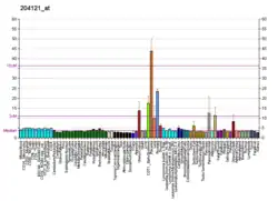 In humans, GADD45G is expressed most in the skeletal muscle, kidney and liver. This gene has a low expression in the heart, brain, spleen, lung and testis.[8] GADD45G is highly expressed in the placenta.[24]