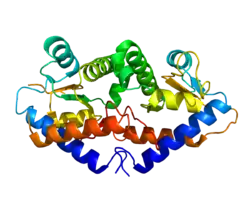 Growth arrest and DNA-damage-inducible protein GADD45 gamma is a protein that in humans is encoded by the GADD45G gene on chromosome 9. GADD45G is also known as CR6, DDIT2, GRP17, OIG37, and GADD45gamma.[5] GADD45G is involved in several different processes, including sexual development,[6] human-specific brain development,[7] tumor suppression,[8] and the cellular stress response.[9] GADD45G interacts with several other proteins that are involved in DNA repair, cell cycle control, apoptosis, and senescence.[6] Low expression of GADD45G has been associated with many types of cancer.[10]