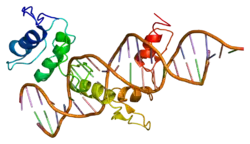 The Gli transcription factors activate/inhibit transcription by binding to Gli responsive genes and by interacting with the transcription complex. The Gli transcription factors have DNA binding zinc finger domains which bind to consensus sequences on their target genes to initiate or suppress transcription.[8] Yoon[9] showed that mutating the Gli zinc finger domain inhibited the proteins effect proving its role as a transcription factor. Gli proteins have an 18-amino acid region highly similar to the α-helical herpes simplex viral protein 16 activation domain. This domain contains a consensus recognition element for the human TFIID TATA box-binding protein associated factor TAFII31.[9] Other proteins such as Missing in Metastasis (MIM/BEG4) have been shown to potentiate the effects of the Gli transcription factors on target gene transcription. Gli and MIM have been shown to act synergistically to induce epidermal growth and MIM + Gli1 overexpressing grafts show similar growth patterns to Shh grafts.[10]