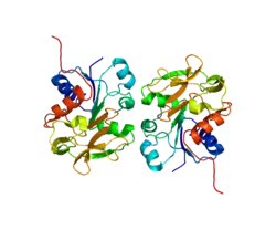 - 1 2 3 4 5 6 Tesmer JJ, Klem TJ, Deras ML, Davisson VJ, Smith JL (January 1996). "The crystal structure of GMP synthetase reveals a novel catalytic triad and is a structural paradigm for two enzyme families". Nature Structural Biology. 3 (1): 74–86. doi:10.1038/nsb0196-74. PMID 8548458. S2CID 30864133.