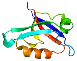 - ↑ Cheng, Jie; Moyer Bryan D; Milewski Michal; Loffing Johannes; Ikeda Masahiro; Mickle John E; Cutting Garry R; Li Min; Stanton Bruce A; Guggino William B (Feb 2002). "A Golgi-associated PDZ domain protein modulates cystic fibrosis transmembrane regulator plasma membrane expression". J. Biol. Chem. 277 (5). United States: 3520–9. doi:10.1074/jbc.M110177200. ISSN 0021-9258. PMID 11707463.