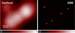 Ground state depletion microscopy (GSD microscopy) is an implementation of the RESOLFT concept. The method was proposed in 1995[1] and experimentally demonstrated in 2007.[2] It is the second concept to overcome the diffraction barrier in far-field optical microscopy published by Stefan Hell. Using nitrogen-vacancy centers in diamonds a resolution of up to 7.8 nm was achieved in 2009.[3] This is far below the diffraction limit (~200 nm).