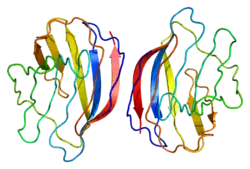 - ↑ Gitt MA, Barondes SH (Feb 1991). "Genomic sequence and organization of two members of a human lectin gene family". Biochemistry. 30 (1): 82–9. doi:10.1021/bi00215a013. PMID 1988031.