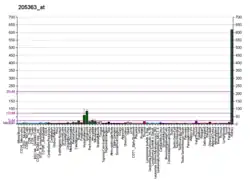 - ↑ Dawany NB, Dampier WN, Tozeren A (Jun 2011). "Large-scale integration of microarray data reveals genes and pathways common to multiple cancer types". International Journal of Cancer. 128 (12): 2881–91. doi:10.1002/ijc.25854. PMID 21165954. S2CID 24740881.