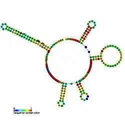 ![]() Predicted secondary structure and sequence conservation of GcvB | |