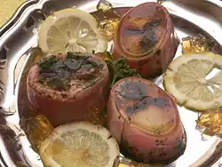 The 10th-century Kitab al-Tabikh includes a recipe for a fish aspic, made by boiling fish heads.[29]