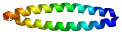 Geminin is a nuclear protein made up of about 200 amino acids, with a molecular weight of approximately 25 kDa.[8] It contains an atypical leucine zipper coiled-coil domain. It has no known enzymatic activity nor DNA binding motifs.