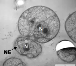 Dense, compact DNA and a deeply invaginated membrane are characteristics of the species.[2][4]
