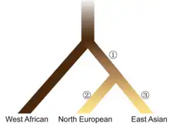 A study published in 2006 used phylogeny to compare the genetic architecture of differing human skin color. In this study, researchers were able to suggest a speculative framework for the evolutionary history underlying current-day phenotypic variation in human skin pigmentation based on the similarities and differences they found in the genotype.[7] Evolutionary history is an important consideration in understanding the genetic basis of any trait, and this study was among the first to utilize these concepts in a paired fashion to determine information about the underlying genetics of a phenotypic trait.
